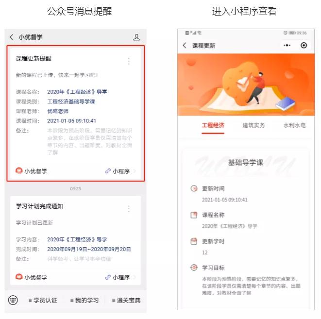 ▲课程更新后「小优督学」会自动提醒学员
