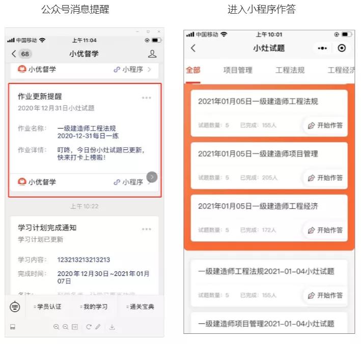 面对学员完成率低的行业痛点,优路教育推出了「小优督学」小程序,从4个方面推动提高学员完成率: