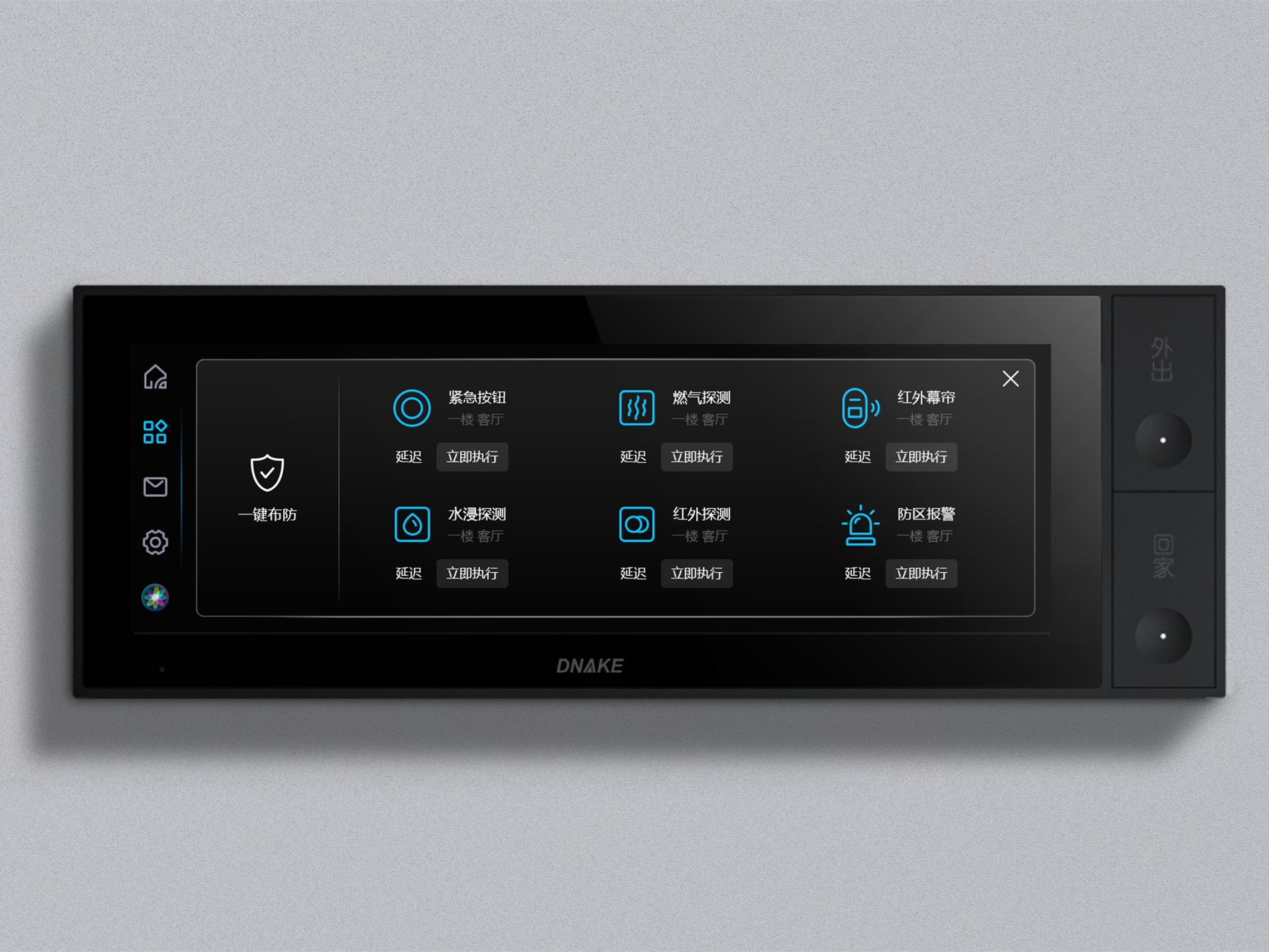 现在:一键切换外出模式,灯光关闭、窗帘拉起、开启布防…遇到紧急情况,手机立马收到提醒。狄耐克智慧居家好伴侣,给你24小时的安心呵护!
