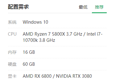 CPU推荐选用Intel酷睿i7-11700K处理器,其拥有8核心16线程,默认频率3.6GHz,最高睿频为5GHz,热设计功耗125W。因为全新架构的CypressCove加持,在和上一代i7-10700K处理器的对比测试中,i7-11700K无论是理论测试还是游戏性能都有不俗的提升幅度。在功耗和发热方面,i7-11700K的表现也很优秀,值得玩家入手。