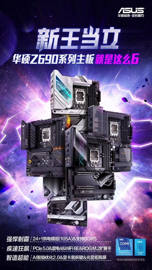 新王当立,华硕全新Z690系列主板强势来袭,实力6得狠!五大系列,四种版型,从外观、尺寸、功能到价格区间均一应俱全,提供玩家们随心所欲任意选搭。目前预售火热开启,快来抢购吧!