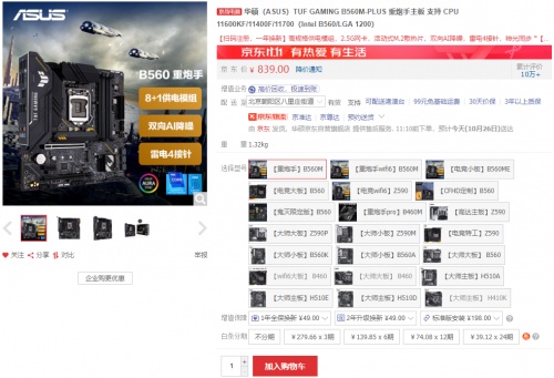 此外还有带WiFi 6无线网卡的TUF GAMING B560M-PLUS WIFI重炮手可入手,10月31日 20:00秒杀价849元,另有6期免息福利。购买链接:https://item.jd.com/100010397513.html