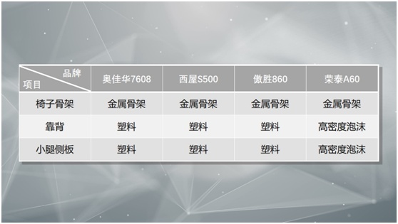 除此之外,西屋S500,傲胜860和奥佳华7608的靠背、小腿侧板等等都是外观部件常用的耐用塑料;只有荣泰A60的靠背、小腿侧板材质是高密度泡沫,闻起来有一定的异味感。