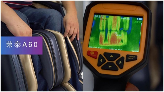 荣泰A60在腰部和小腿设有热敷功能,具有暖膝功效,这对有关节炎或寒腿的人是福音。