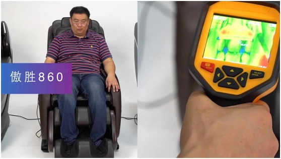 奥佳华7608在进行腰背按摩时,增加了两侧热敷功能,温感热敷可以缓解肌肉紧张,不过遗憾的是腿部没有热敷功能;