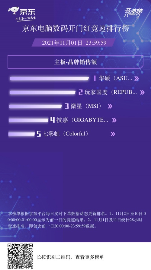 11月1日双十一开门红,华硕主板可谓势头强劲,成绩斐然,勇夺京东主板品牌销售额排行榜冠军!且华硕ROG玩家国度主板的表现也相当耀眼,位居销售额榜单TOP2!硬实力,用数据说话!华硕主板秉承坚持完美、匠心独运、近乎苛求的理念,为玩家带来极致不妥协的优秀产品。目前双十一大促活动仍在进行中,超值秒杀、免息福利、满减特惠及晒单返E卡等超多优惠等你来拿,有需求的玩家可以持续关注!