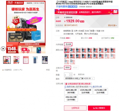 且天猫商城还有华硕B560重炮手主板搭i5-11400F处理器套包,天猫双11全球狂欢季活动价仅需1879元,另享3期免息福利,感兴趣的小伙伴速速来抢。购买链接:https://detail.tmall.com/item.htm?id=640080294555&skuId=4764061662273