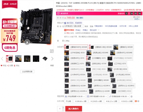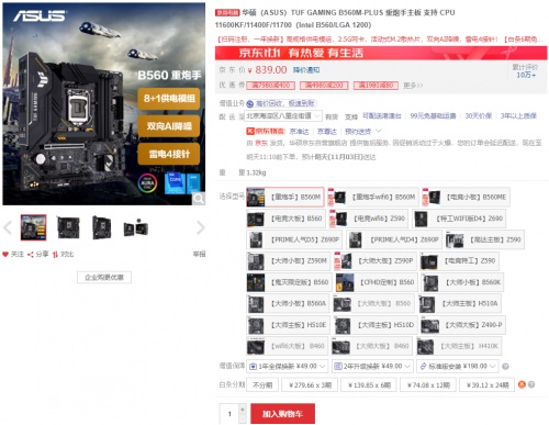 此外还有带WiFi 6无线网卡的TUF GAMING B560M-PLUS WIFI重炮手可入手,秒杀价849元,可享6期免息福利。购买链接:https://item.jd.com/100010397513.html