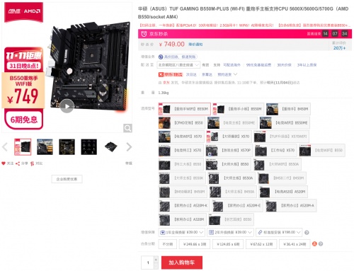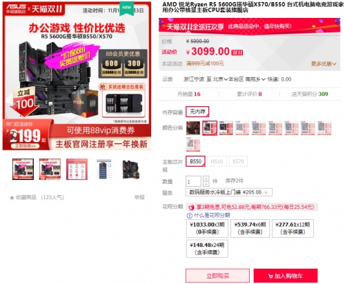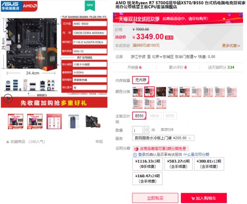 另外天猫商城还有华硕B550重炮手WIFI主板搭R7 5700G处理器套包,双十一全球狂欢季活动价仅需3249元,另享3期免息福利。购买链接:https://detail.tmall.com/item.htm?id=652716171042&skuId=4706370205886