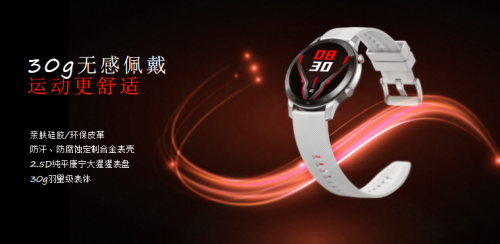 这款智能手表采用圆形表盘设计,整体更加趋近于传统手表,1.39英寸的AMOLED屏幕,分辨率为454,支持全天候息屏显示。虽然采用铝合金表体,但整机重量却控制在了30g,是当下最轻的智能手表。30g的极致重量,佩戴时则更加无感,官方宣称“无感佩戴,舒适运动”。红魔手表采用双核AI处理器,经过全新的系统级优化和调教,则解决了大屏幕耗电快的问题,15天的超长续航也得到了众多用户的青睐。