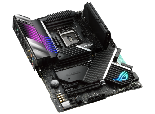 ROG M13EG采用18+2供电模组设计,采用了可承载100A电流的一体式DrMOS,搭配双8Pin ProCool II高强度特质实心电源接口,强大的供电规格充分满足旗舰处理器严苛的需求,同时提供顶级的超频性能。搭载了全新OptiMem III内存优化技术,优化内存走线,减少干扰信号,大幅提高内存兼容性和超频空间,内存频率稳定高达DDR4 5333MHz+(超频)。一体式全覆盖水冷散热装甲由99.99%的纯电解铜制成,覆盖CPU、VRM和PCH区域,并集成温度传感器及进/出水流速侦测、漏液监测等,搭配专业散热软件,全方位高效降温,冷静制胜。还配备金属背板提供额外散热性能,以提供更好的性能。网络方面板载万兆和2.5G双网卡,配备最新的WiFi 6E无线网卡,可提供6Ghz的频段超快速度无线传输,为玩家带来爽快利落的网络环境。支持PCIe 4.0技术,拥有多达5个M.2接口,其中2个源自ROG DIMM.2扩展卡,均覆盖散热片,降低温度,确保获得高性能。并板载双雷电4接口,提供高达40Gb/s速度,支持外接两个4K显示器。