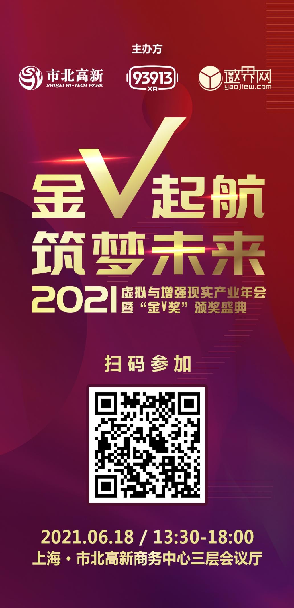 「金V起航,筑梦未来」,备受期待的2021虚拟与增强现实产业年会暨「金V奖」颁奖盛典将于6月18日13:30在上海市北高新商务中心隆重启幕!