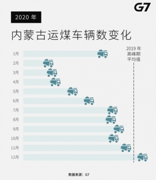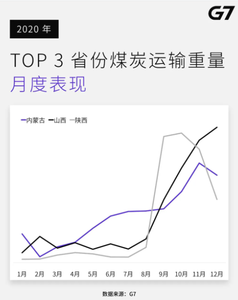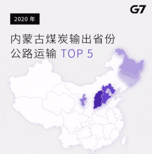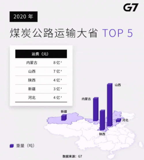2020年,G7平台上的煤炭公路运输大省TOP5分别是山西、内蒙古、陕西、新疆、河北。据悉,山西也在2020年重回产煤大省NO.1,但内蒙古产量却同比下降了10%左右。